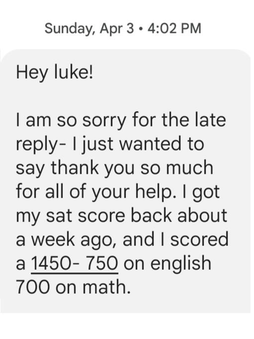 ➤ I assess their strengths and weaknesses so that we can build upon their knowledge base.➤ I draw upon a wide variety of materials, utilizing official practice tests in addition to many outside resources.➤ I create a shared Google Drive folder, and we'll take note of key takeaways in each session.There is no magic bullet to maximizing one's score, but I'm always on the lookout out for helpful, individualized ways to expedite and improve the process.